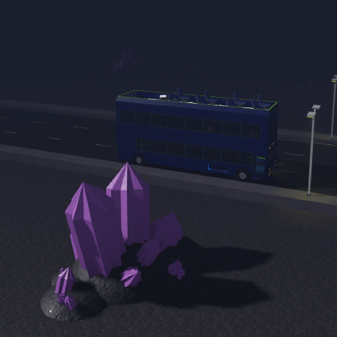 Dark Forest | FangedWerewolf (@Noobbiom) | "An unnaturally large dark forest with various large mushrooms scattered about. Quite moody." The Dark Forest is a biome meant to be a similar yet opposite to the Birch Forest. The biome features groups of large dark trees with large bushes, red and brown mushrooms scattered about. Unlike most biomes, light doesn't pierce well in this biome. Trivia - Part of the idea-making when it came to the Dark Forest was due to FangedWerewolf (@Noobbiom) getting annoyed seeing Birch Forest in all his sessions of Bus Simulator, and wanted to make another biome to add more variety. |