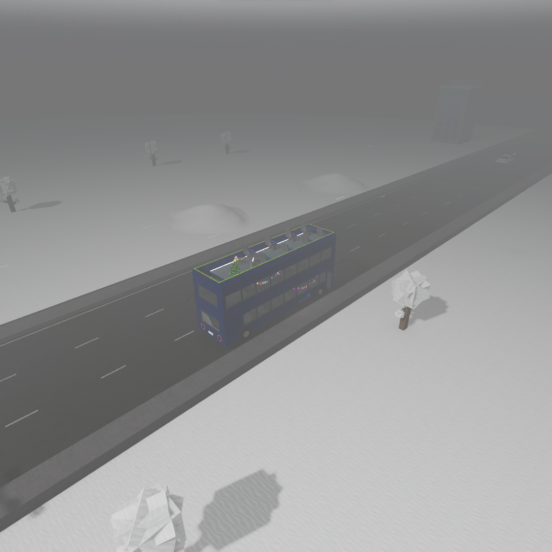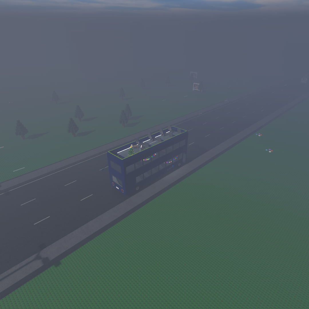 Forest | Noble (@NobleReign) | "A biome with densly packed trees lining the roadside." The Forest is a biome that's very similar to Summer, but more dense with fog and has more trees spawning, commonly in a line of five trees. They spawn in both large and small sizes randomly around the biome. |