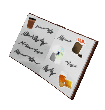 When used, it displays custom recipes either made by you or from other players, with specific measurements on ingredients, order, and with name and description. It also shows you your last custom drink that you have made, giving you the option to create a custom recipe for itself.