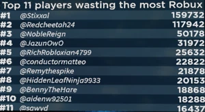 | 3 | Most Robux Wasted | Shows a leaderboard of the top donators to the game. Only forced events and songs purchased count towards this. Plays the LittleBigPlanet Vita Pod music in the background. |