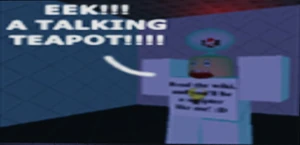 | 10 | A Talking Teapot | Shows a short old-school animation of a Robloxian breaking through a small room by running away from a comically large talking teapot. | ![]() |